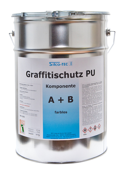 SILCO-TEC Graffitischutz PU ist ein geprüftes 2-Komponenten-Polyurethanharz-System (Komponente A: Harz und B: Härter). Erhältlich in RAL-Tönen gemäß technischem Datenblatt, in farblos oder transparent. Er eignet sich für mineralische Wandflächen im Innen- und Außenbereich. Das Produkt ist in der BAST Liste geführt.